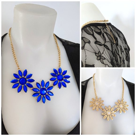 3/20$ NWOT Blue And Gold Flowers Necklace