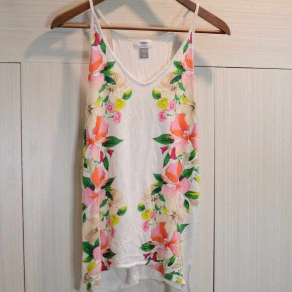 White and floral Old Navy Racerback tank. Some damage at armpits, priced to reflect that. Make an offer!