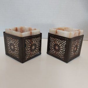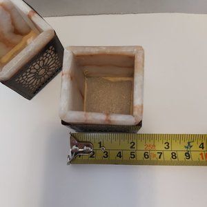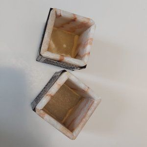 3/20 Pair of Handmade Marble cutout metal arabesque table accents box holder