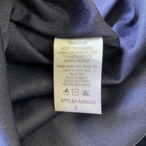 Pretty sleeveless blouse, blue with white lace details, flowy bottom, size small. 100% rayon. Same day or next day shipping. Bundle up to save!