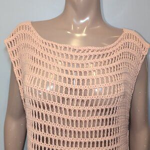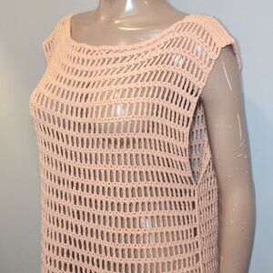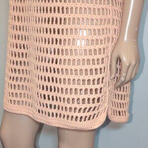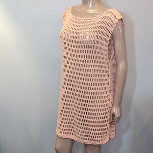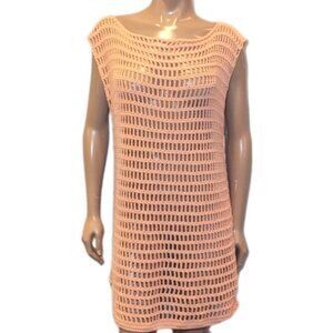3/$20 Peach Crochet Shell Dress Beach Swim Cover Up Cap Sleeve Sheath Boat Neck