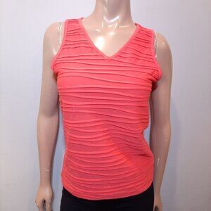 3/$20 REITMANS Pintucked Sleeveless Top Vneck Coral Tank Wide Shoulder Textured