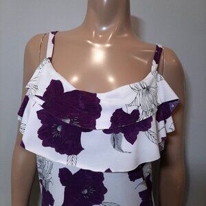 3/$20 RICKIS Floral Ruffled Flounce Sleeveless Top Purple White