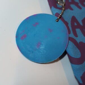 Keep your Cards, Passport and Phone safe in this stylish zippered pouch. Purchased while traveling in Aruba, it has two spacious zippered pockets and the RR signature chain tag. There is no strap, we used the eyelets to hook onto our luggage.