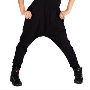 Stylish black harem pants. Comfortable and trendy. Elastic waist and cuffs, loose fit, ideal for casual wear, dance, and yoga.