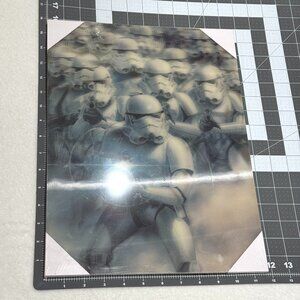This is a 3D wall plaque with Stormtroopers from Star Wars. The image moves when you look at it from different angles. It's a fun piece for any Star Wars fan or collector, and it looks great on the wall. Hard to find!!
