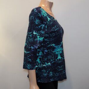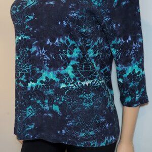 3/$20 Tribal Tye Die Damask Print Top Boho Neckline ¾ Sleeve Jewel Tone Knit