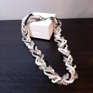 3/$20 Twisted Multi Strand Beaded Statement Necklace Pearl Rhinestone Gunmetal