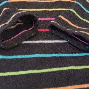 Soft, warm fleece with fun multicolored stripes on black