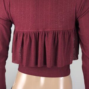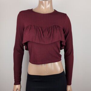 3/$20 Zara W&B Collection Maroon Long Sleeve Crop Top Tiered Ruffle Flounce Fall