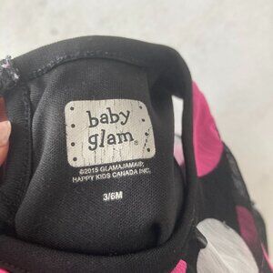 Baby Glam baby girl dress, black with white & pink polka dots, pink frills