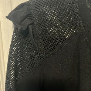 black xl long sleeve shirt with mesh detail and ruffle on the shoulder