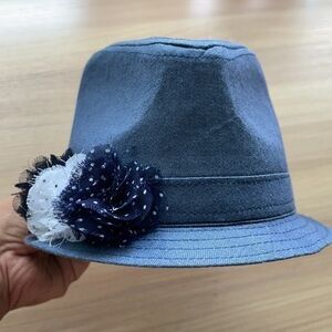 3/$20 ❤️ blue Denim Infant Hat with Floral-accent