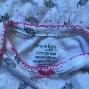3/$20 simple joys newborn gown elastic bottom white elephants