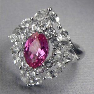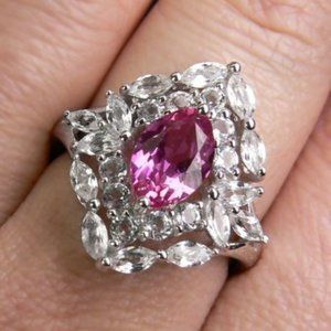 3.20CT Pink Sapphire & White Topaz SILVER Ring 7