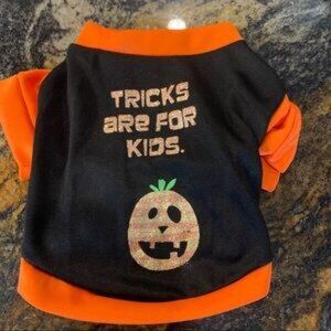 The “tricks are for kids” and the pumpkin are done in glitter. I tore the tag out because it was bothering me but it’s a size extra small. See photos for measurements. Bundle and save on shipping so check out the rest of my closet