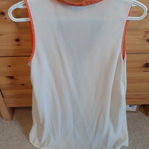 White silk tank top with orange colour and navy buttons down middle