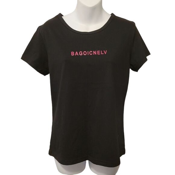3/$20 Y2K Plain Funny Graphic Black With Pink Tee T-shirt Top Size: M