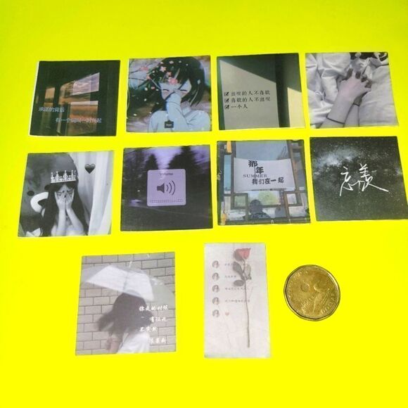 10 pcs brand new waterproof Funny stickers. You get exactly what you see on the photo. ( $2 coin is NOT included, just to show you the size of the stickers)