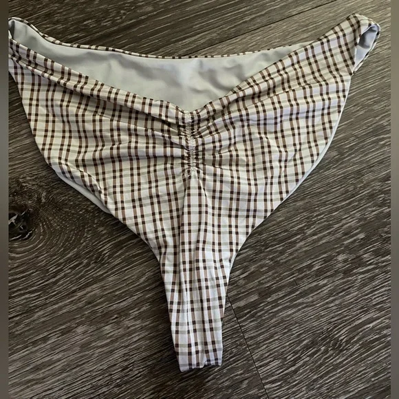 Size small neutral/brown plaid bikini bottoms from White Fox Boutique. Super flattering bum scrunch and cheeky cut on back. Never worn, I bought them a few years ago for a trip and they never came in time but I forgot to return them!