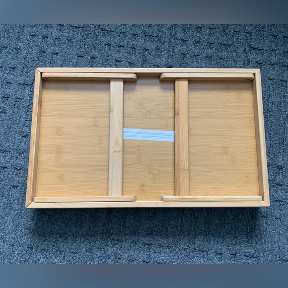 Bamboo tray with legs, wood colour, like new. Just do not use it.