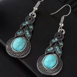 🌸3/$25 Blue stone oval drop earrings | 2.5”L