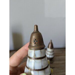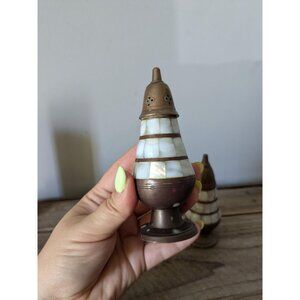 Elegant Brass and Mother of pearl Salt & Pepper shakers.