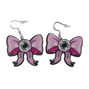 3/$25 Creepy Cute Eye Ball Pink Bow Earrings Craft w/ hypoallergenic 925 Silver