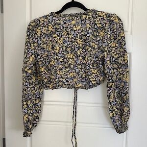 *3/$25* Dynamite Blue and Yellow Ruched Tie Front Crop Blouse