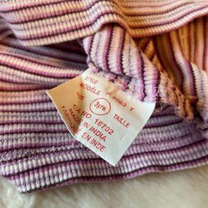 Genevieve Lapierre turtleneck long-sleeved shirt in very good pre-loved condition. Size is listed as age 3, estimated to be size 3 (see measurements posted). Shirt is multi-coloured stripe (mauve, white, pink). Shirt is 100% cotton, machine washable. This post is for one item only. Mix and match for bundle price. Colour depends on device/screen settings and lighting in pictures. All measurements are approximate and may slightly vary. Measurements are taken by hand with item laying flat and unstretched. All items are from my smoke free home.