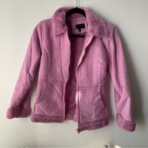 ⭐️3/$25 Girls Faux suede pink jacket with faux fur lining