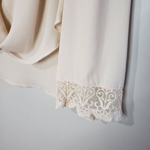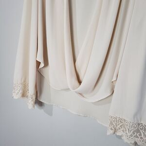 🦋3/$25 Jelous Tomato Medium Long Sleeve Sheer Cream Draped Front Blouse Lace