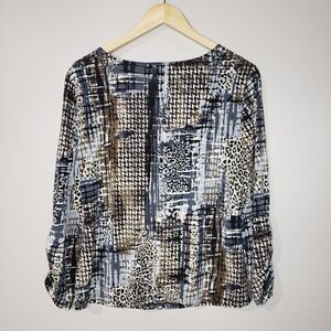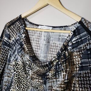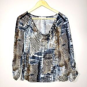 🦋3/$25 Melanie Lyne Large Brown Blue Print Long Sleeve Cowl Neck Top
