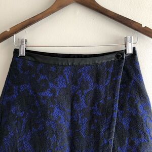 Nasty Gal wrap style asymmetrical floral lace overlay short mini skirt with snap clip closures and faux leather waistband. Cotton polyester and viscose blend. Blue and black in color. Size S / small. Great gently pre loved condition / EUC. Approx measurements waist: 26“ length: 15-16“ Offers welcome. Ships in 1-2 business days.