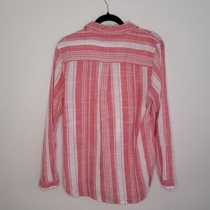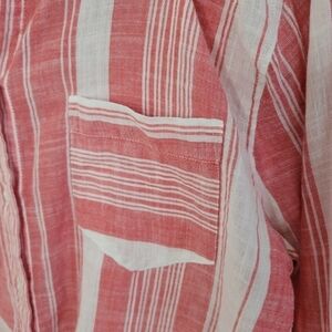 Lightweight cotton shirt with soft strawberry red and white stripes.