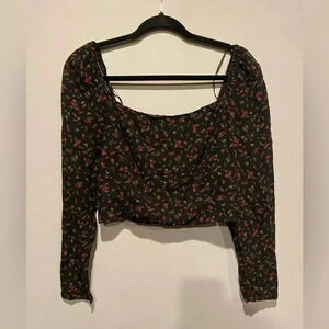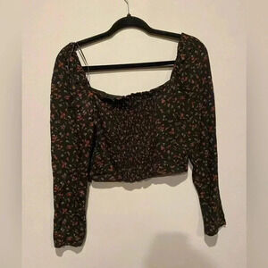 💕3/$25💕 Oak + Fort Black Garden Print cropped length Top