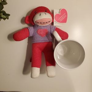 🌺 3/$25 Sock Monkey in mug with heart design 💕