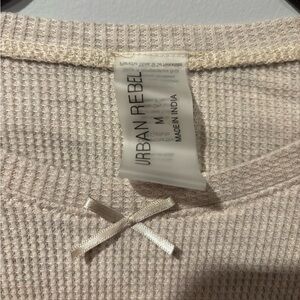 Super cute and flattering ribbed long sleeve top in a versatile cream/beige shade. Features a fitted silhouette with a subtle cropped length and delicate bow detail at the neckline for an effortlessly feminine touch.
