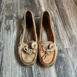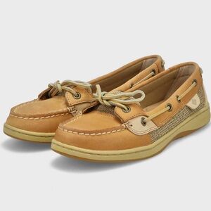 The Angelfish linen/ oat by Sperry Top-Sider captures classic boat shoe style in a feminine design. Meet Angelfish. She's the kid sister to Sperry favourite, Bluefish. Discover fun prints, nautical accents, glitter and sequins. You will want to make Angelfish your perfect choice for weekend escapes or heading across the quad on weekdays.