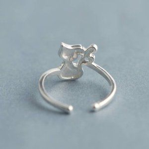 Super adorable open ring in 925 sterling silver featuring a cat with her tail