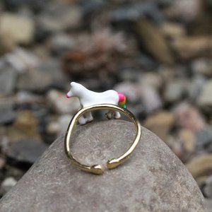 This unique animal ring is hand painted with vibrant colors and exquisite details. It features a legendary creature that has been recounted since the dawn of civilisation: Unicorn which signifies loyalty, passion, and vitality.