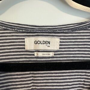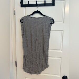 Stylish sleeveless top. Features black and white stripes. Perfect for casual wear.