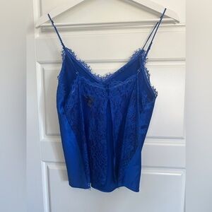 Experience the allure of this Victoria's Secret camisole, crafted in a captivating blue hue. Designed for both comfort and style, this top is perfect for layering or wearing on its own. Its sleek silhouette and soft fabric make it a versatile addition to any wardrobe.