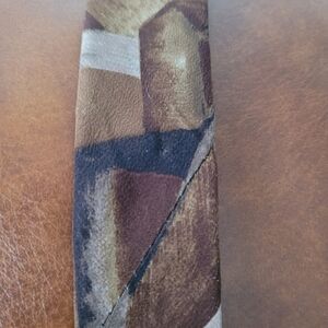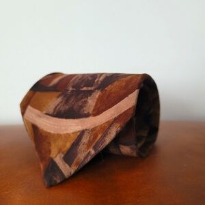 Vintage brown & beige silk tie in abstract impressionistic cubist pattern.