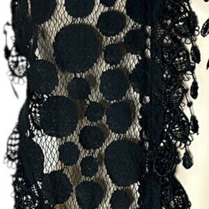 Vintage Black Lace Shawl Scarf Fringe Polka Dot 68x8 Festival Dark Fairy Goth