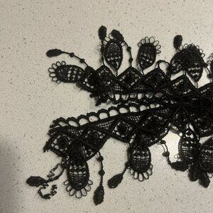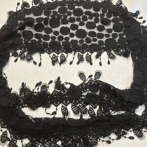 3/$25 Vtg Black Lace Shawl Scarf Fringe Polka Dot 68x8 Festival Dark Fairy Goth