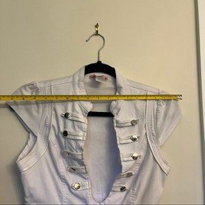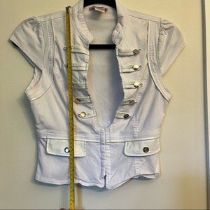 Elevate your style with this chic white military-inspired top. Perfect for any occasion, this top features a structured design with button details.