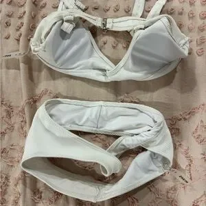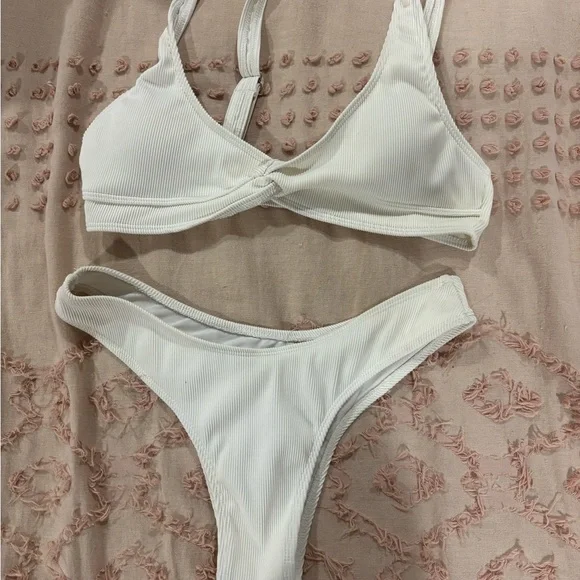 🤍3/$25🤍-bundle. Stylish and comfortable white ribbed bikini set perfect for beach days. Enjoy a chic look with this elegant swimwear.