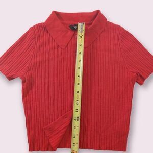 H&M ribbed short sleeve button down top with collar. Comes in a great cherry red shade. Size small.