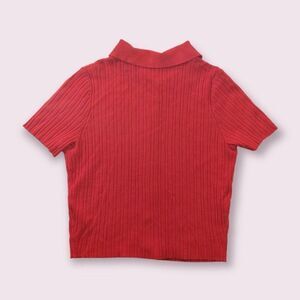 š(3/$25)Ā H&MāRibbedāCollaredāShortāSleeveāRedāTop